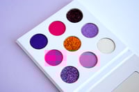 This sparkly purple eyeshadow palette features colors inspired by the 1984 American rock musical drama film "Purple Rain" scored by and starring Prince.